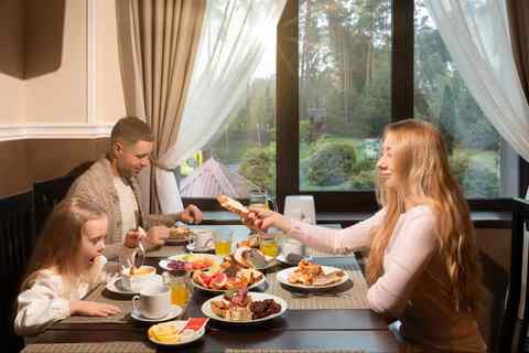 Санаторий располагает 375 комфортабельными номерами, которые подходят как для индивидуального отдыха, так и для семейных поездок. Рестораны и кафе комплекса предлагают изысканные блюда белорусской и европейской кухни, приготовленные бренд-шефом.